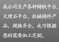 鑄鐵平臺可以用于檢驗機械零件平面度、平行度、直線度等形位公差的測量基準(zhǔn),也可用于精密零件的劃線和測量、實驗、鉚焊、焊jie、基礎(chǔ)、工作臺等,鑄鐵平臺工作...